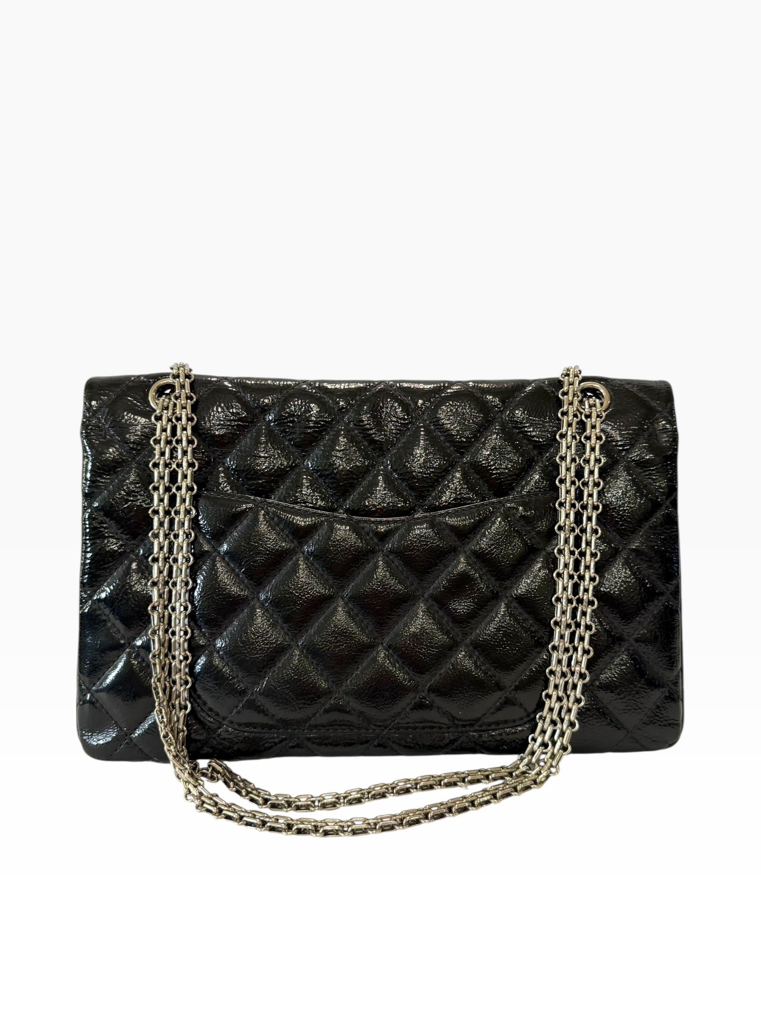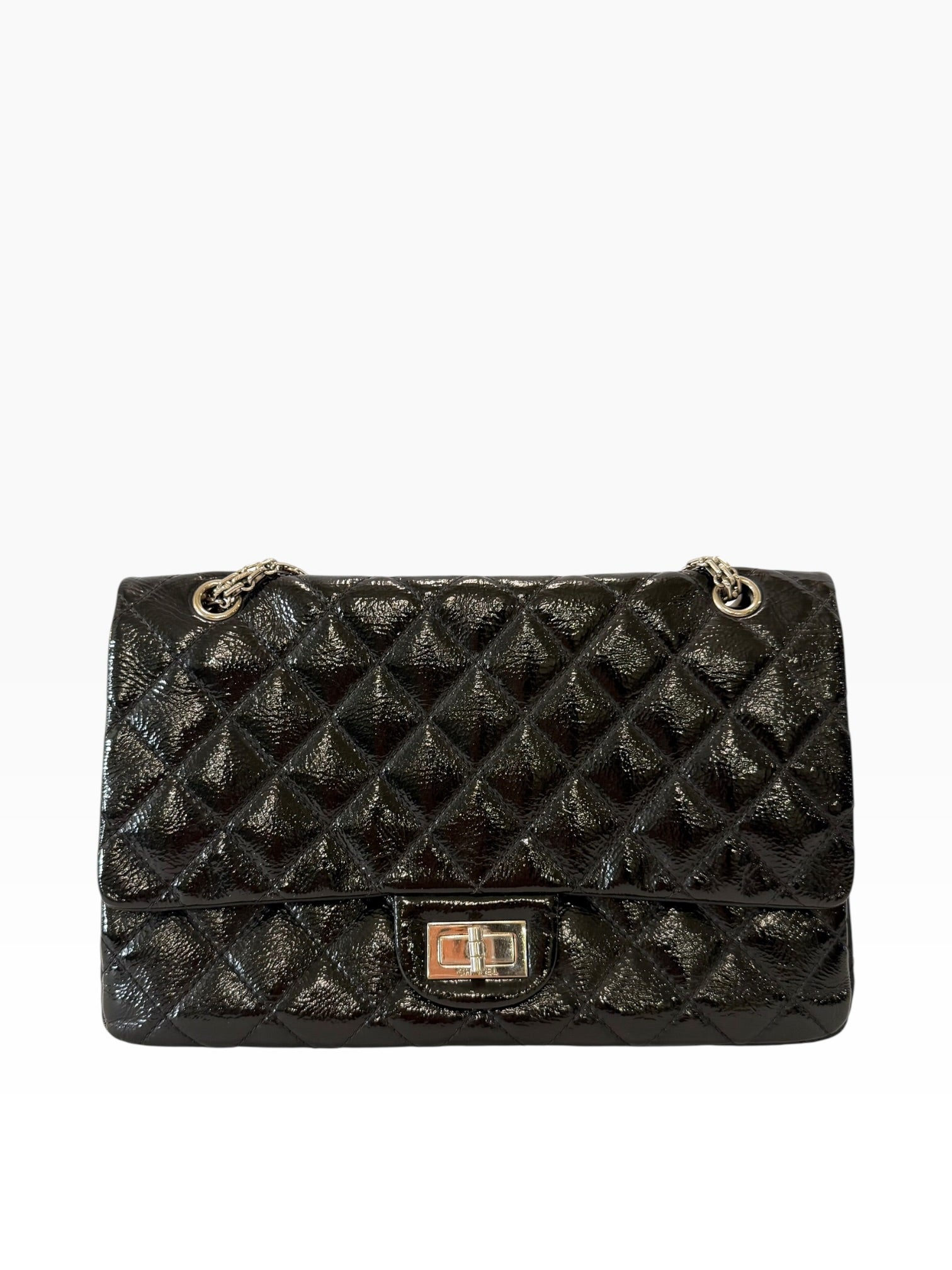 The iconic Chanel 2.55 in timeless black calfskin leather. This 227 size features the signature quilted design and chain strap, complemented by silver-tone hardware. A versatile luxury piece that transitions seamlessly from day to evening, offering both elegance and functionality. The supple calfskin develops a beautiful patina over time, making it a cherished investment for any collection.