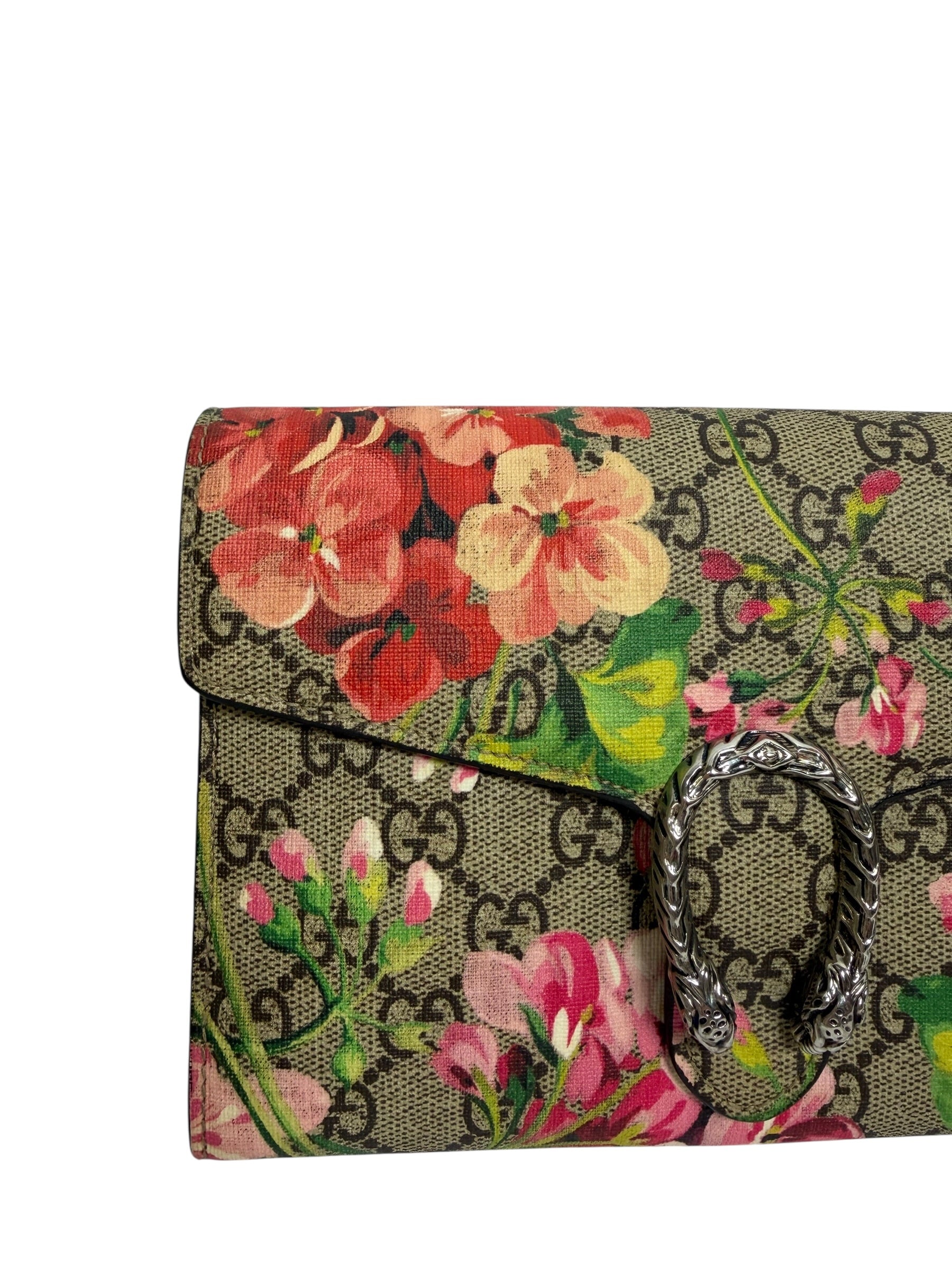 The Gucci Dionysus WOC in small brown is a compact wallet-on-chain designed for effortless everyday elegance. Featuring the iconic Dionysus hardware with its distinctive lion head closure, this piece combines luxury craftsmanship with practical functionality. The rich brown leather offers versatile styling while the chain strap allows hands-free carrying. Perfect for those seeking a sophisticated accessory that transitions seamlessly from day to evening, this small format fits essentials while maintaining Gucci's signature aesthetic and quality construction.