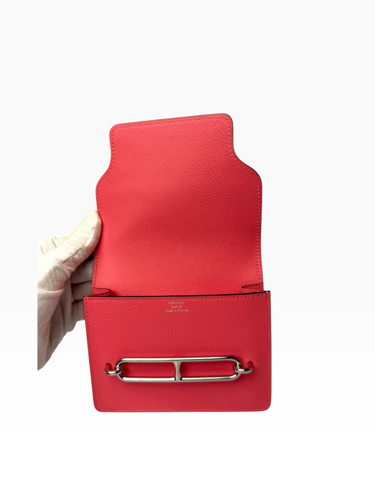 Discover timeless elegance with this stunning Hermès Pink Roulis Wallet, complete with palladium hardware and the full original set. This coveted design combines sophisticated craftsmanship with practical functionality, featuring multiple card slots and compartments to organize your essentials. The soft pink leather exudes understated luxury, while the signature Hermès closure ensures secure closure. Includes all original packaging and accessories, making this an exceptional addition to any luxury collection. A versatile piece that transitions seamlessly from day to evening, this wallet embodies the heritage and prestige Hermès is renowned for.